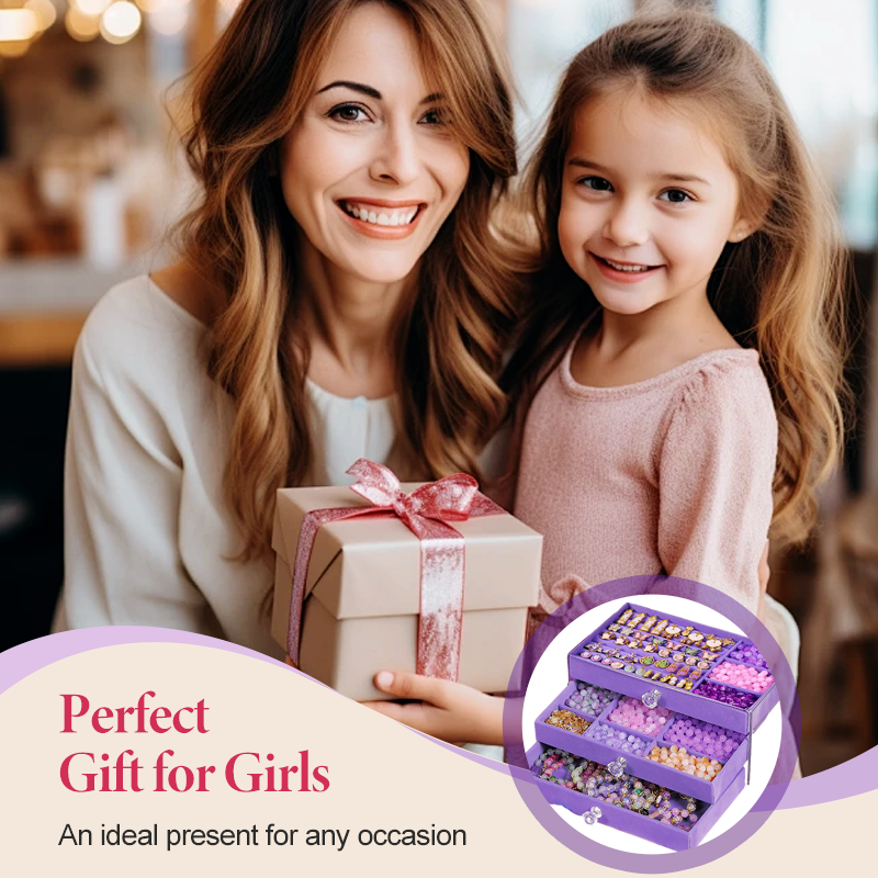 ELEGANT FLerskiktad förvaringslåda: Håller alla pärlor, berlocker och verktyg snyggt organiserade och lättillgängliga. Den vackra designen fungerar också som ett permanent smyckeskrin för färdiga skapelser, vilket lär barn den värdefulla färdigheten att organisera.