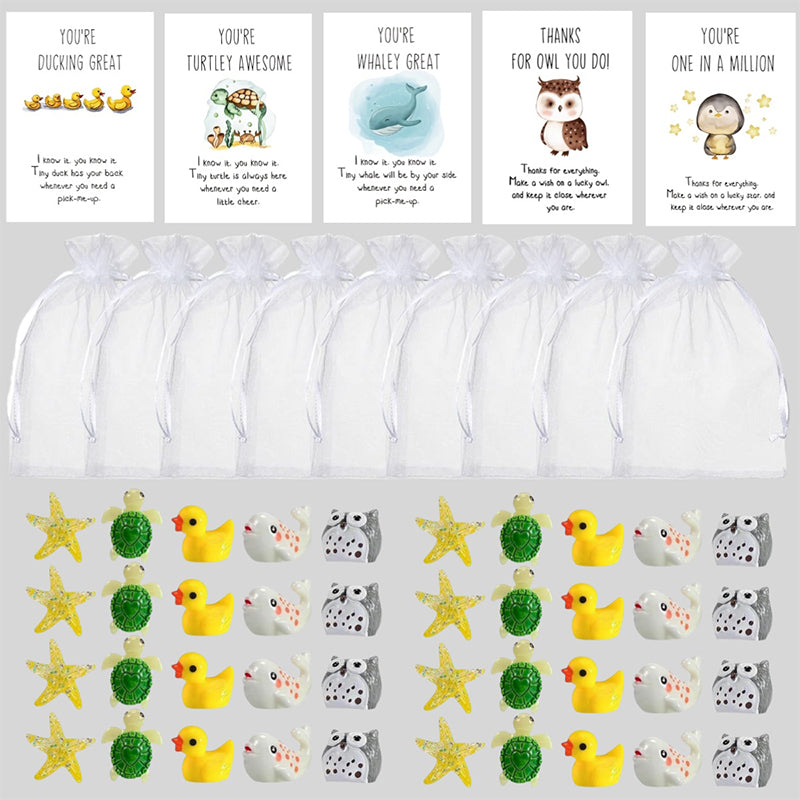 ENGAGERANDE DJURDESIGN: Innehåller glada djurfigurer som ankor, sköldpaddor, ugglor och valar. Var och en har en lekfull ordlek som tillför humor och värme till alla team- eller kontorsmiljöer.