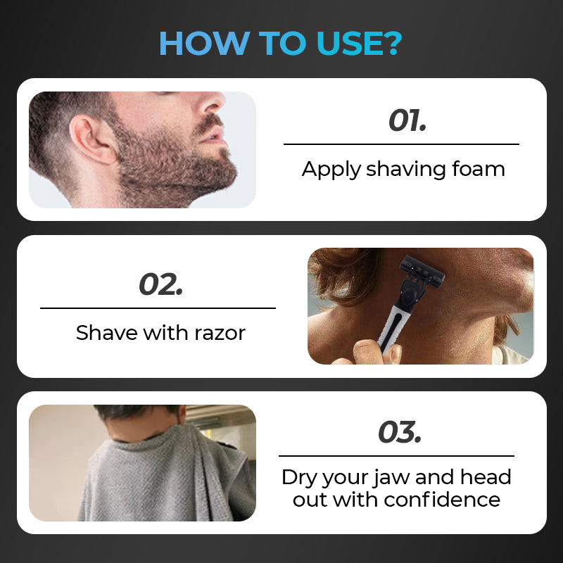 BLAD MED ÖPPEN STRUKTUR FÖR ENKEL SKÖLJNING: Den L-formade bladdesignen med en öppen ram gör att vattnet kan rinna fritt under sköljningen och spolar ut instängt hår och rakrester direkt. Detta förhindrar igensättning och bibehåller topprestanda, vilket säkerställer hygienisk användning med lågt underhåll efter varje rakning.