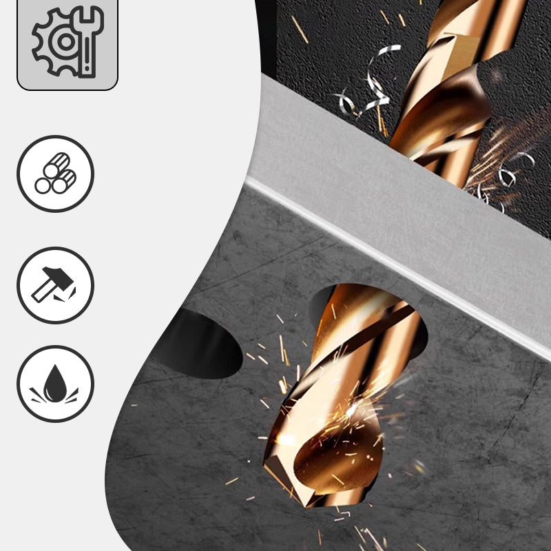 FÖRBÄTTRAD PRECISION MED KOBOLT – Tillverkade av höghastighetsstål M35 (5 % kobolt) övervinner dessa borrkronor rostfritt ståls hårdhet. Den värmebeständiga beläggningen minskar friktionen, förhindrar överhettning och förlänger borrens livslängd, vilket är idealiskt för höghastighetsborrning inom fordons-, flyg- och marinindustrin. Ingen slöhet, inga kompromisser.
