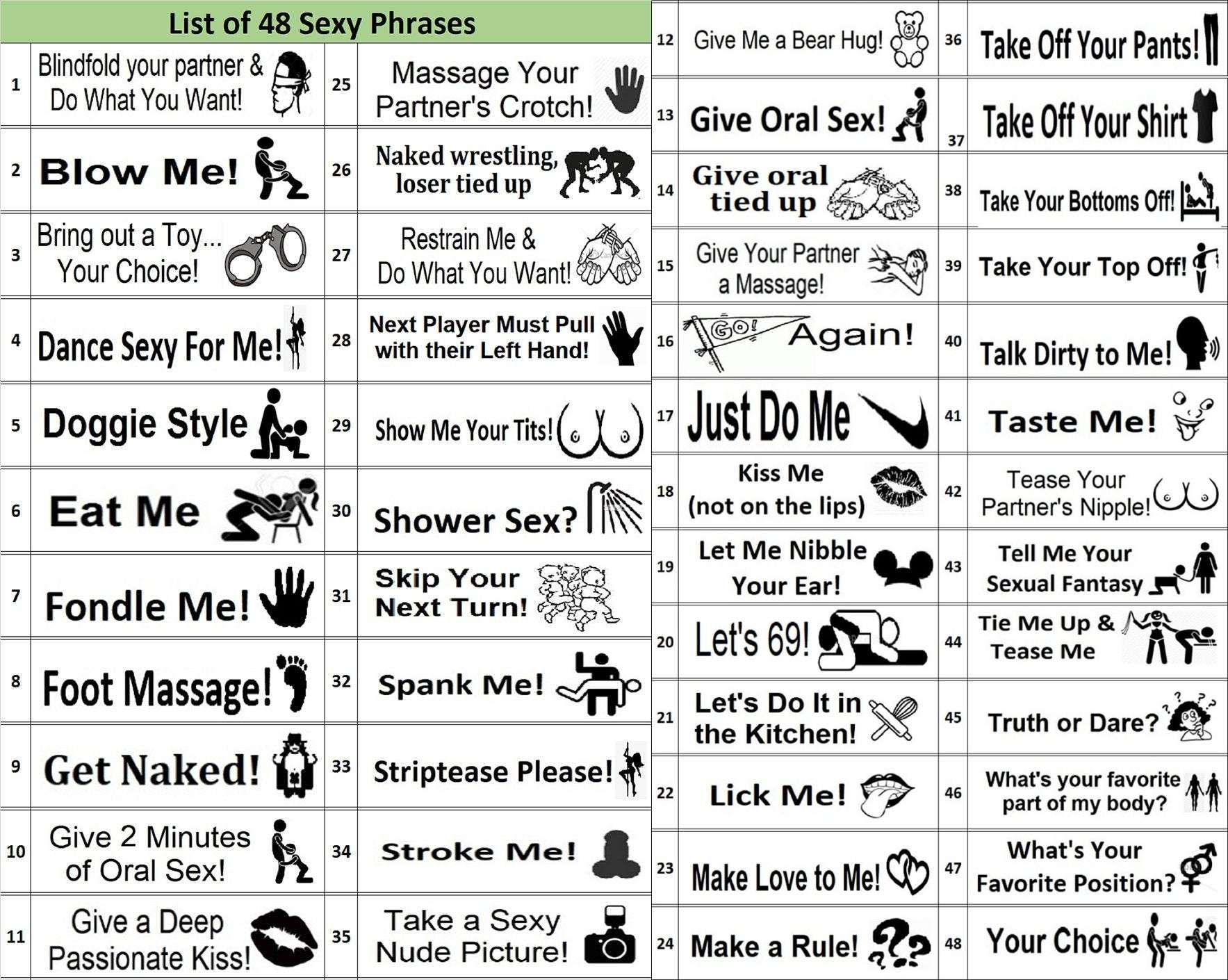 48 Olika Erotikkommandon: Är du rädd för att svära? Vi har det fixat för dig. Meddelanden med bilder kan hjälpa dig att uttrycka dina tankar utan ord. Om du har ouppfyllda sexuella fantasier kan detta spel definitivt hjälpa dig att uppfylla dem.