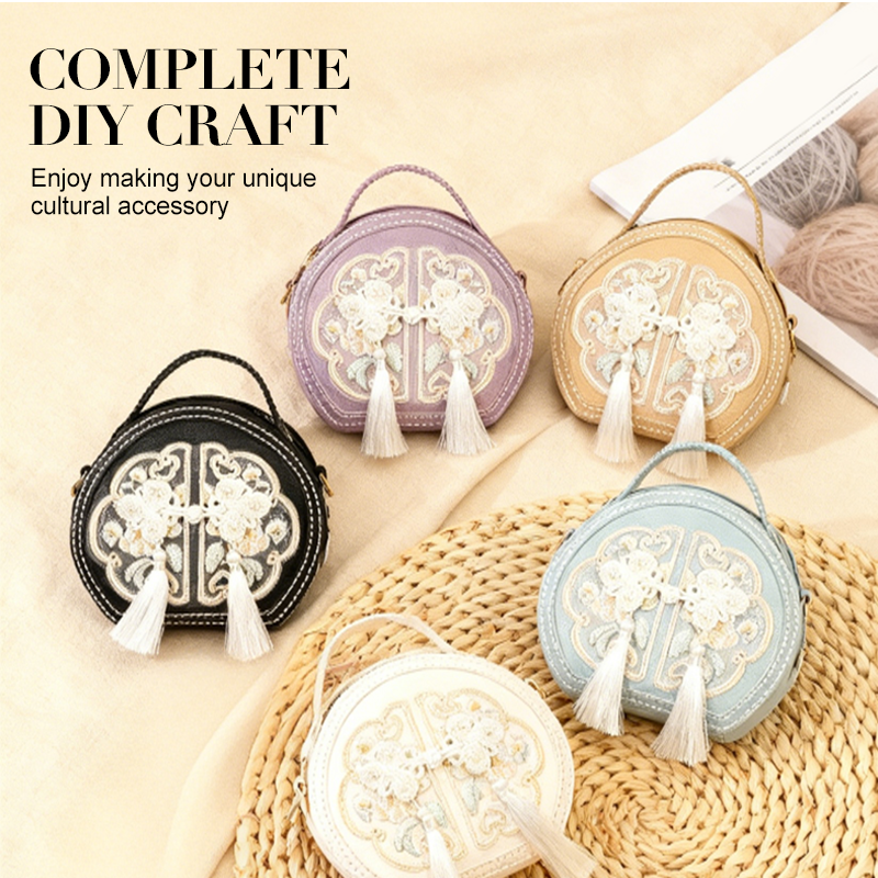 KOMPLETT DIY-HÅNDVERKSKIT – Detta omfattande kit innehåller alla nödvändiga komponenter för att tillverka en traditionell rund väska i kinesisk stil. Entusiaster kan ägna sig åt ett givande hantverksprojekt och sätta ihop varje del för att skapa ett unikt tillbehör. Kitet innehåller tråd, PU-läder, beslag och instruktioner som guidar dig genom processen.