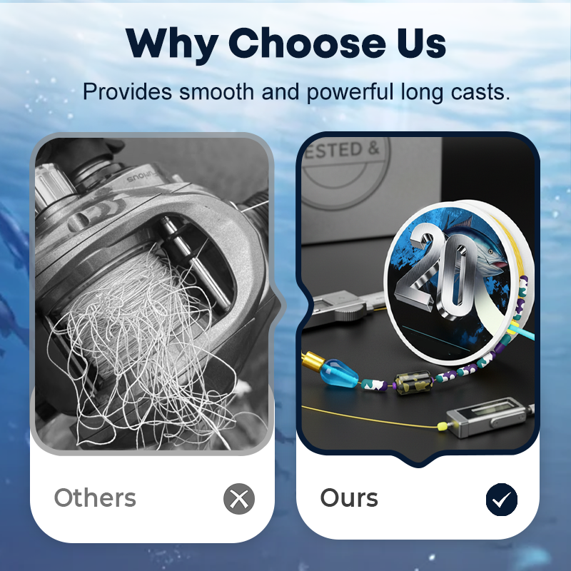 SNABB VATTENINTRÄDE – Få ditt bete till strikezonen på ett ögonblick. Linans släta yta och densitet gör att den skär igenom vattnet snabbt och effektivt, vilket maximerar din kastnoggrannhet och fisketid.