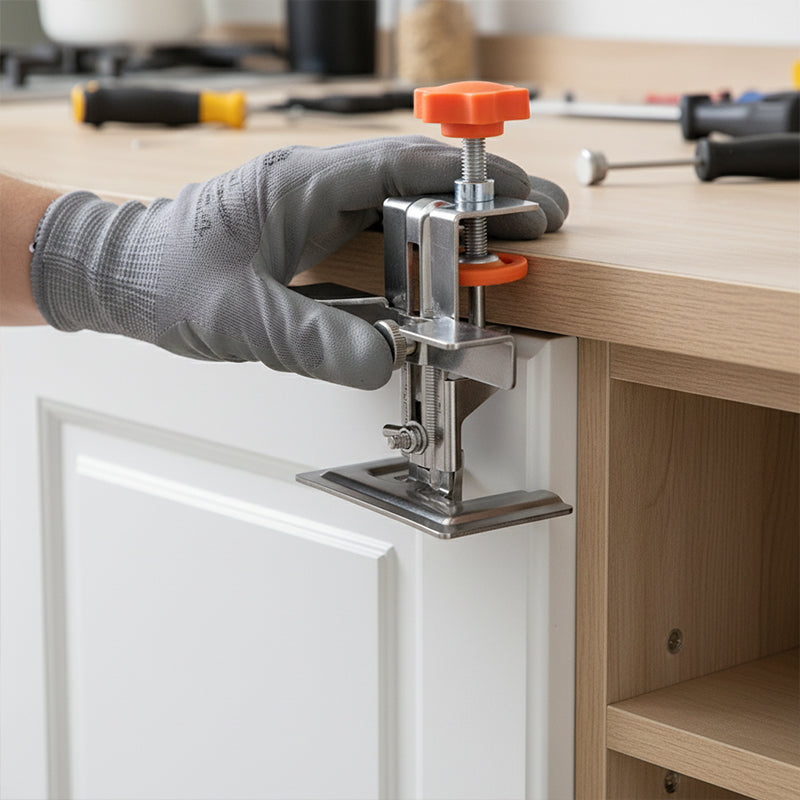 HANDSFRI ANVÄNDNING – Den säkra klämmekanismen håller skåpdörren stadigt i önskat läge, vilket frigör båda händerna så att du effektivt kan använda borrmaskiner och skruvdragare, vilket avsevärt ökar installationshastigheten.