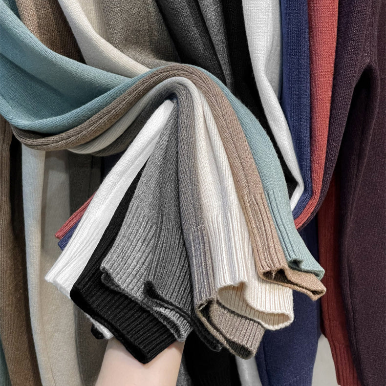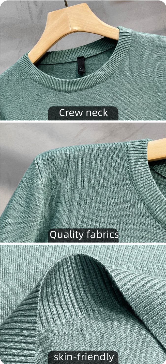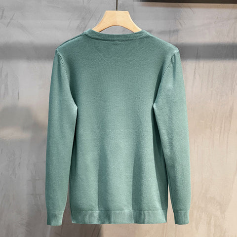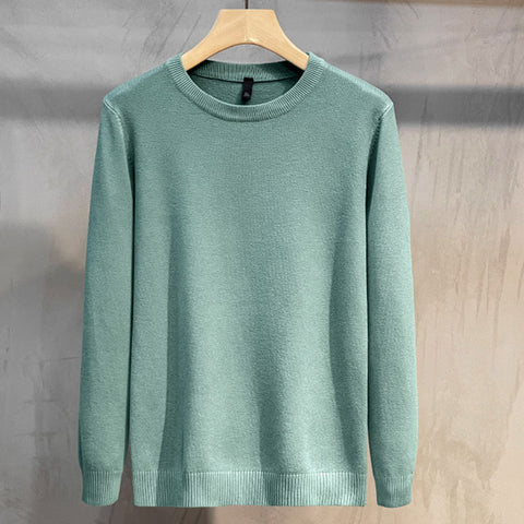 Enfärgad stickad bas-tröja med rund hals för herr